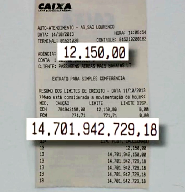Em nota, a Caixa Econômica Federal afirmou que havia identificado uma “inconsistência na conta do cliente”, e que providencia a regularização. Um caso similar já tinha acontecido em Minas Gerais, quando um empresário se assustou ao perceber que o limite do cheque especial saltou de R$ 12,5 mil para R$ 14,7 bilhões.