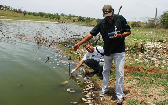 Para Antônio Carlos Gonçalves técnico de qualidade e monitoramento de águas está praticamente certo o motivo da mortandade de peixes e que nunca viu tanta morte em açude no nível do de Coité. Fizeram parte da equipe de trabalho ainda Luciano Meneses, químico da CEPED e Anderson Carneiro especialista em Recursos Hídricos.