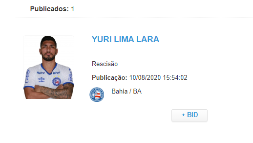 O volante Yuri não faz mais parte do elenco do Bahia. Nesta segunda-feira (10), a rescisão de contrato do jogador com o Esquadrão de Aço foi publicada no Boletim Informativo Diário (BID) da Confederação Brasileira de Futebol (CBF). O vínculo durava até final de 2020. O destino do atleta é o Oeste, que disputa a Série B do Campeonato Brasileiro. O Bahia vai ficar com 50% dos direitos econômicos do jogador em caso de futura venda.