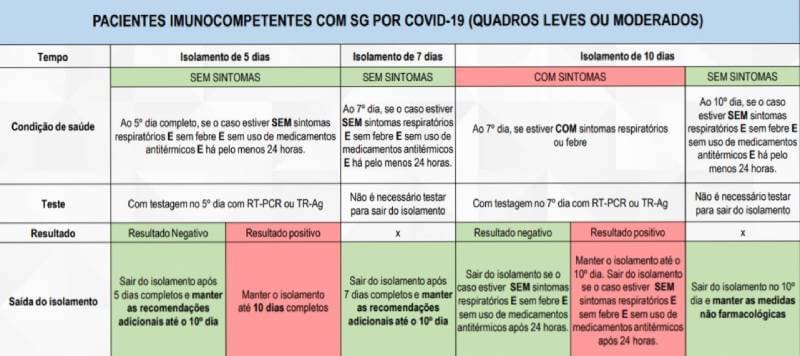 A partir de agora, o isolamento deverá ser feito por 7 dias, desde que não apresente sintomas respiratórios e febre, há pelo menos 24 horas e sem o uso de antitérmicos.