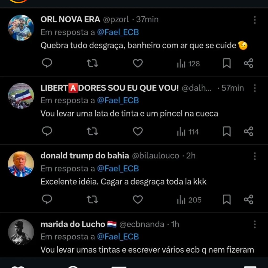 "O Estádio é privado do Esporte Clube Vitória. Adianto que o jogo não será aqui a não ser que o Barcelona assine um contrato se responsabilizando por eventual vandalismo, ameaças de pichações, de quebra de cadeira e por aí vai. Para o Barcelona jogar aqui tem que pagar e o custo para jogar no Barradão é mais de R$ 300 mil reais. Se pagar e assinar o contrato, vai jogar", disse o presidente rubro-negro.