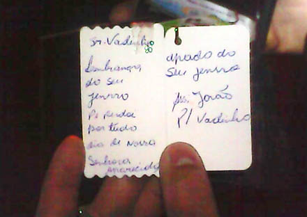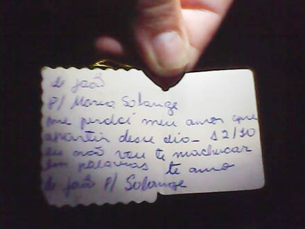 Foi encontrado com João, alguns bilhetes de despedida, o que leva a acreditar que ele teria se jogado na frente do veículo propositalmente. “Me perdoe meu amor, que a partir desse dia, 12/10, eu não vou te machucar em palavras. Te amo. De João para Solange”, outro bilhete dizia: “Sr. Vadinho, lembrança do seu genro, me perdoe por tudo. Dia de Nossa Senhora Aparecida”.
