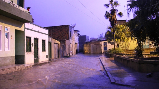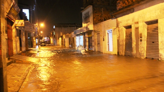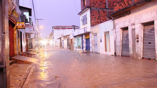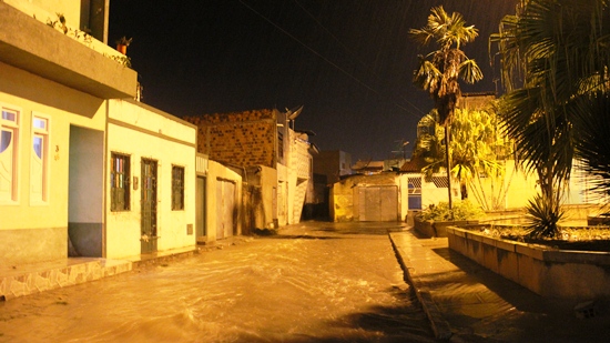 O centro comercial ficou totalmente inundado, para a felicidade da população a cidade tem um bom declive