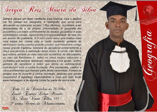 Sérgio Reis Moura Silva, 30, formado em Geografia pela Universidade do Estado da Bahia – UNEB Campus de Serrinha, morreu por volta das 10h do último domingo,21, no Hospital Aristides Maltês , em Salvador, onde estava internado há dois meses, com leucemia, doença que só foi diagnosticada após exames há duas semanas.