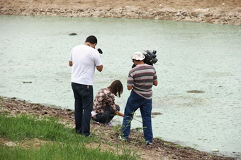 Na manhã desta terça-feira, 14, duas equipes de TV, Itapoan-Record e Aratu-SBT estiveram no açude realizando gravação para os telejornais da noite e entrevistaram a ambientalista Juliana que informou que não tem dúvida que aquele forte odor exalados da água do açude é resultado do esgoto doméstico.