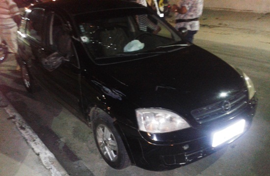 O veículo sofreu vários danos, depois de ser atingido pela motocicleta que caiu cerca de vinte e cinco metros depois, bem como seu condutor que não usava capacete.