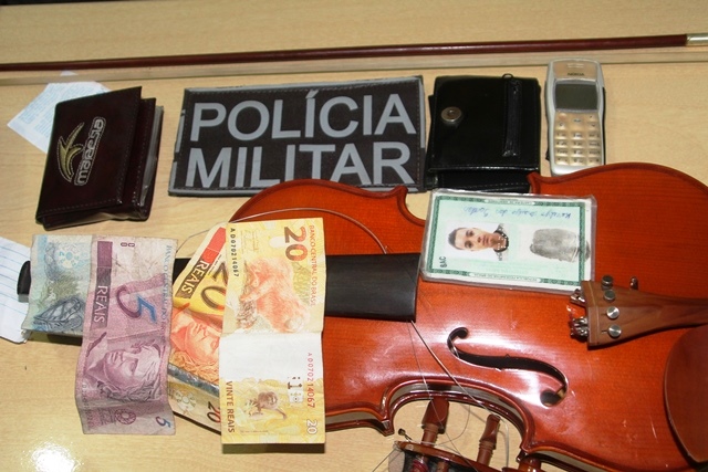Com os assaltantes foram encontrados alguns objetos subtraídos na cidade de Valente, dentre eles um violino, celulares, uma carteira e uma quantia em dinheiro.