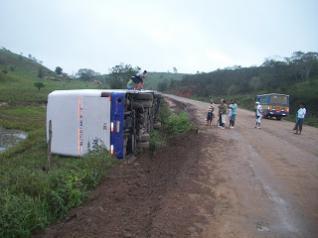 Um ônibus que transportava a equipe de futebol Geração, da cidade de Camaçari, para jogar na cidade de Mairi neste domingo,1º, tombou com cerca de 50 pessoas, felizmente ninguém se feriu gravemente.