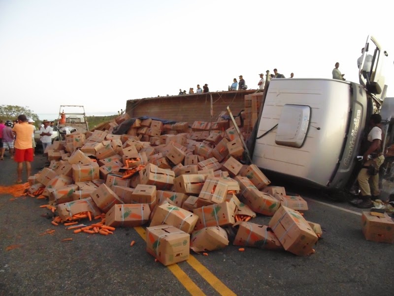 De acordo com informações de populares, o caminhão foi fazer uma ultrapassagem e colidiu contra o Fiat Strada, a cerca de 5 km de Baixa Grande. O Fiat Strada ficou com a frente destruída e o caminhão carregado de cenoura tombou na pista.