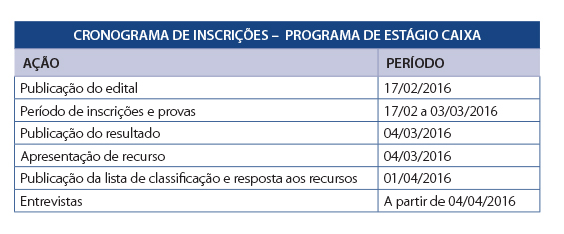 Logo depois de se inscrever, o estudante terá acesso à prova, que inclui noções de Português, Matemática e Conhecimentos Gerais. O resultado sai no dia 4 de março, mesma data para que possíveis recursos sejam apresentados. Os estudantes serão chamadas para entrevistas à medida que as vagas novas forem surgindo ou contratos vigentes encerrados, a partir de 4 de abril.
