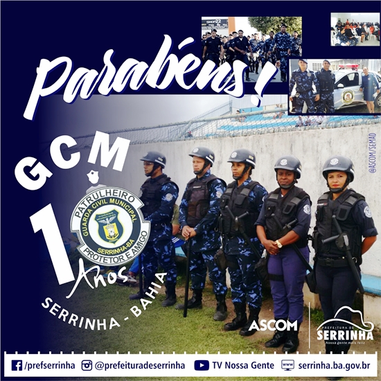 Criada no ano de 2005 através da Lei N° 654/2005, a Guarda Civil Municipal de Serrinha completa em 2016, dez anos de relevantes serviços prestados à sociedade.