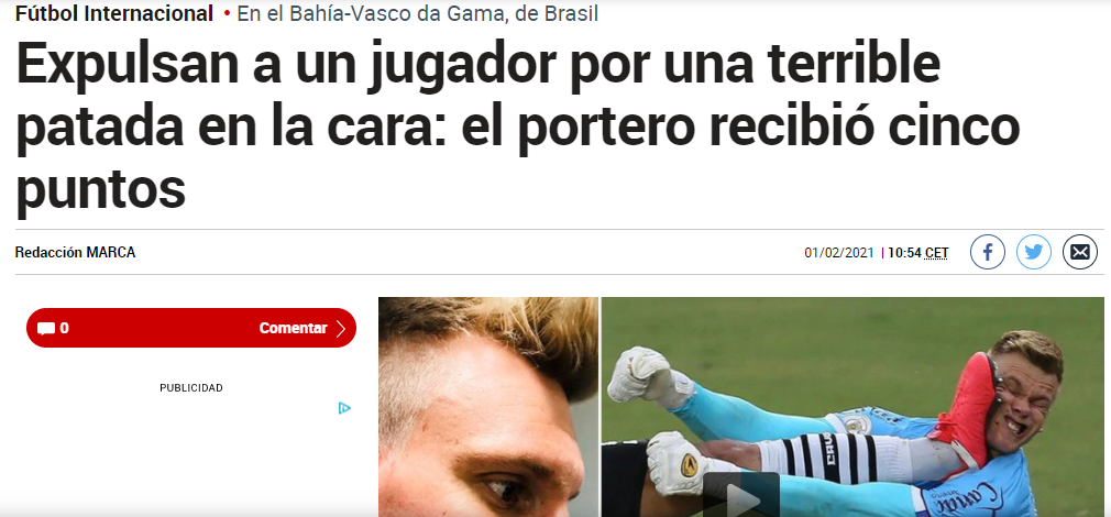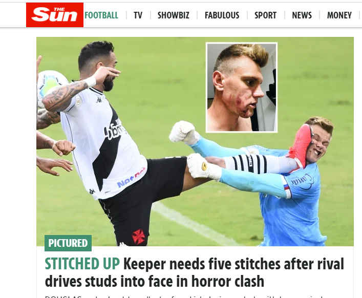 O chocante lance do último domingo (31) entre o zagueiro Leandro Castán, do Vasco, e o goleiro Douglas, do Bahia, não rendeu assunto somente no futebol brasileiro. Jornais e sites ao redor do mundo repercutiram o acidente que rendeu cinco pontos no rosto do arqueiro do Esquadrão de Aço.