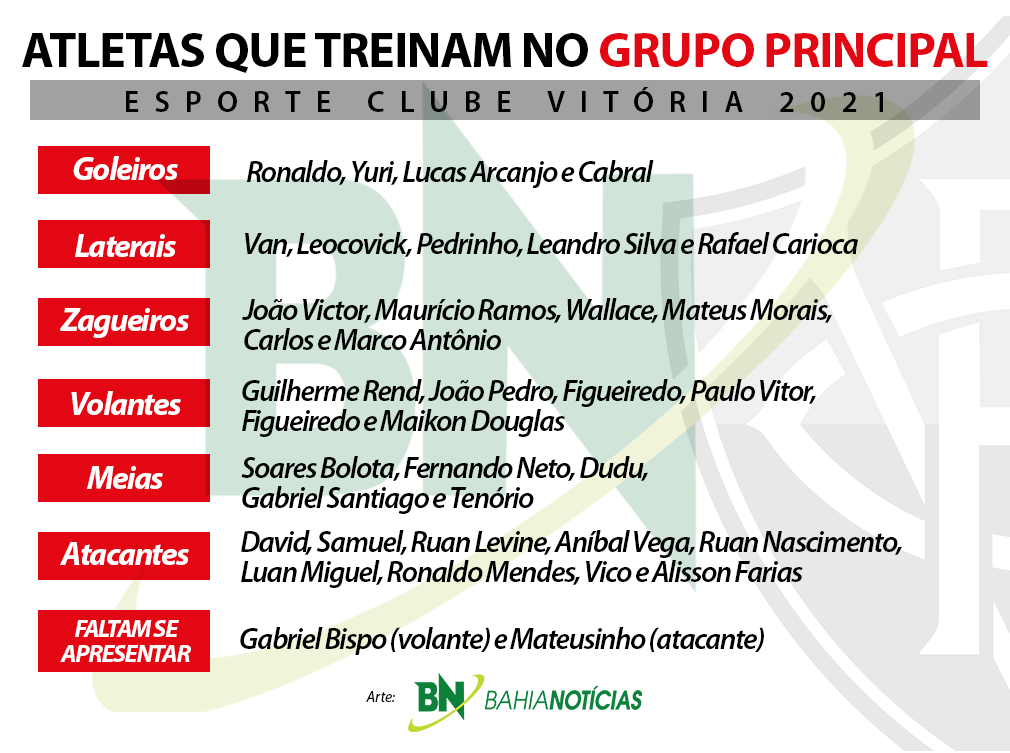 O lateral-esquerdo Rafael Carioca consta na lista, mas a tendência é que ele deixe o Vitória nos próximos dias (saiba mais aqui). Outros nomes podem ser adicionados ou retirados até a estreia da equipe no Baianão.