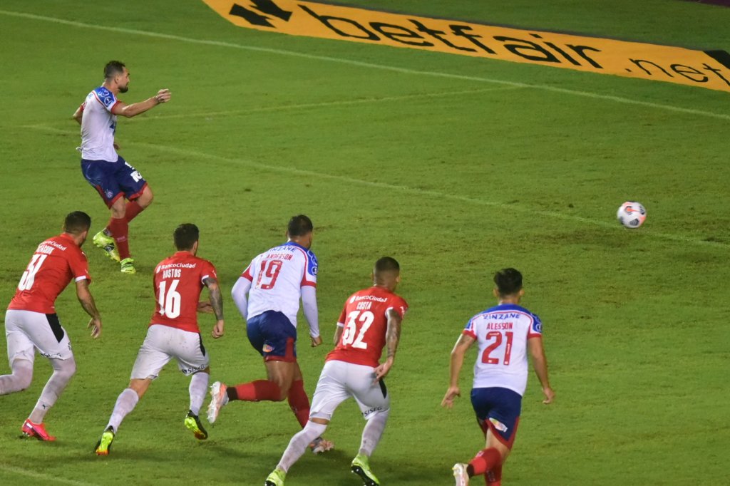 Logo aos cinco minutos do primeiro tempo, o Independiente marcou com Velasco em mais uma cobrança de pênalti. No lance que definiu a penalidade, Renan Guedes acabou derrubando Martínez.