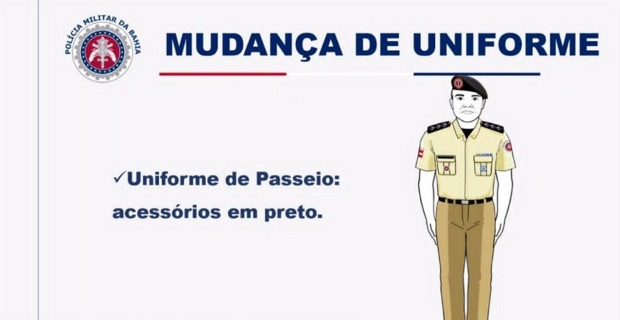 A Polícia Militar da Bahia (PM-BA) decidiu mudar os uniformes usados pelos policiais da corporação. A mudança foi anunciada na manhã desta quinta-feira (26) pelo Coronel Paulo Coutinho, comandante-geral da instituição, em uma reunião realizada de forma virtual com capitães e tenentes.